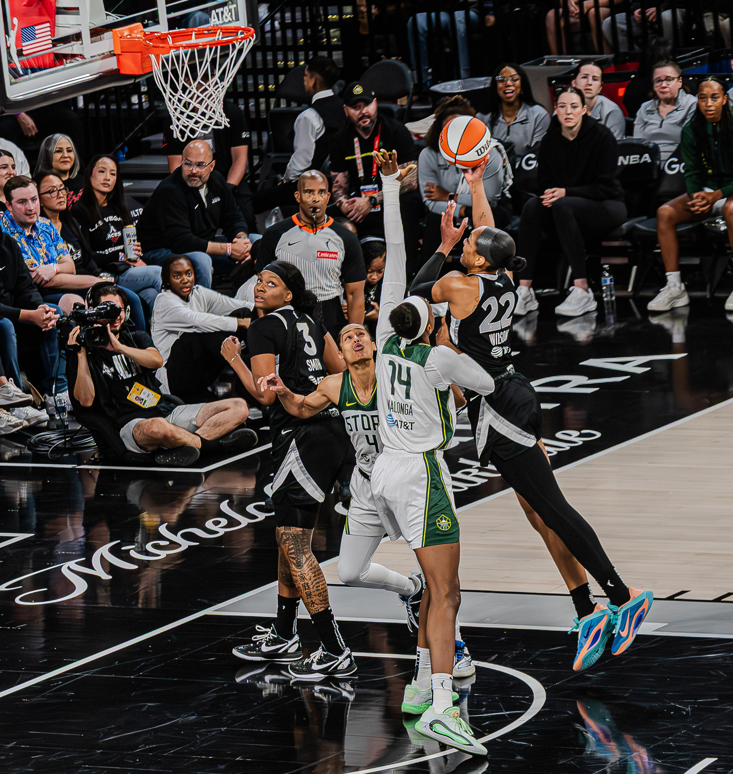 On the next possession, Wilson missed again, but Jackie Young was in perfect position for the follow-up, tipping in the go-ahead basket with 12.4 seconds remaining. After a timeout, Seattle advanced the ball and got a clean look—Wheeler’s mid-range jumper from the free throw line hit the back of the rim. The Storm couldn’t get off another shot as time expired.