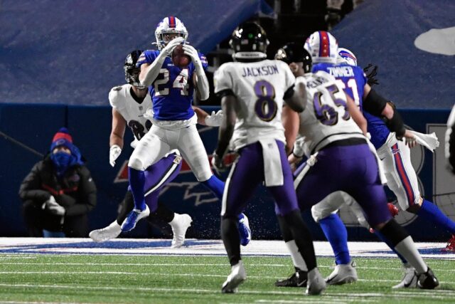 Orchard Park, NY—Cornerback Taron Johnson’s 101-yard interception return for a touchdown in the third quarter, the Buffalo Bills defeated the Baltimore Ravens 17-3 on Saturday night to advance to the AFC Championship Game for the first time since the 1993 season in front of approximately 6,700 fans.