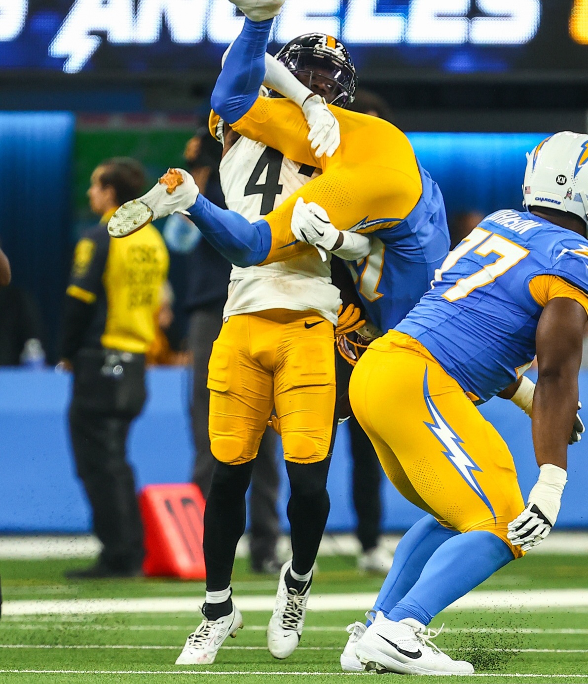 Steelers CB Darius Slay left in the second quarter with a concussion and did not return. Chargers DL Teair Tart and TE Oronde Gadsden (knee) were injured in the third quarter.