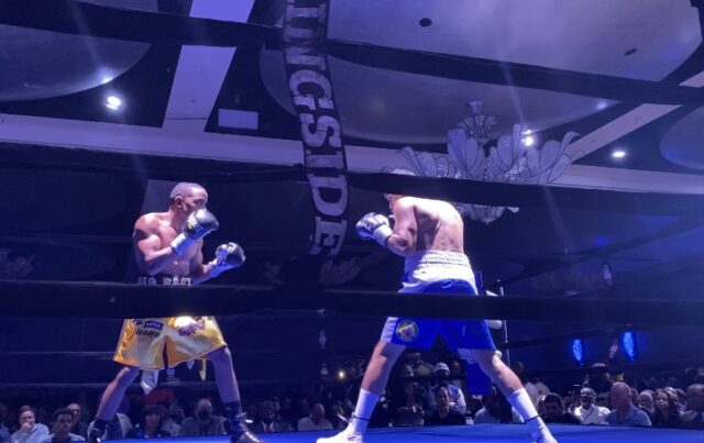 Seizing the moment, “Big Back” unleashed his arsenal with massive jabs and body shots knocking the wind out of Gonzalez backing him against the ropes visibly faded getting referee Eric Dali to stop the fight 1:52 seconds in round 4.