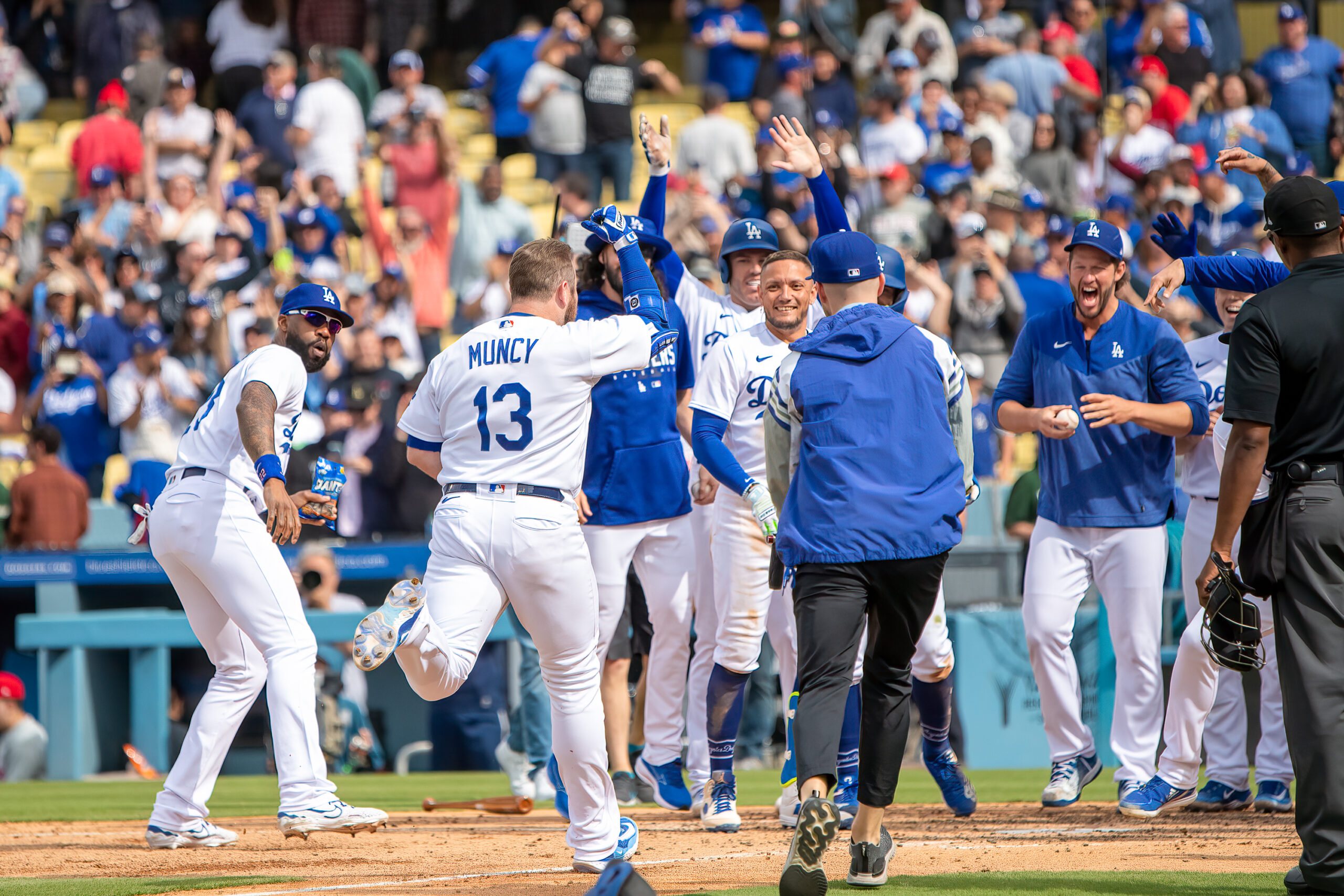 The Dodgers got the sweep in the three-game series, outscoring the defending NL champions 36-11 and reaching double digits in every contest.