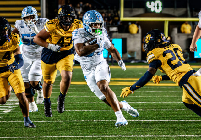 The Tar Heels’ offensive struggles continued. Entering the game ranked among the bottom three Power Five teams in both scoring and yards per play, they managed just 4.7 yards per snap and went three-and-out on their first three possessions.
