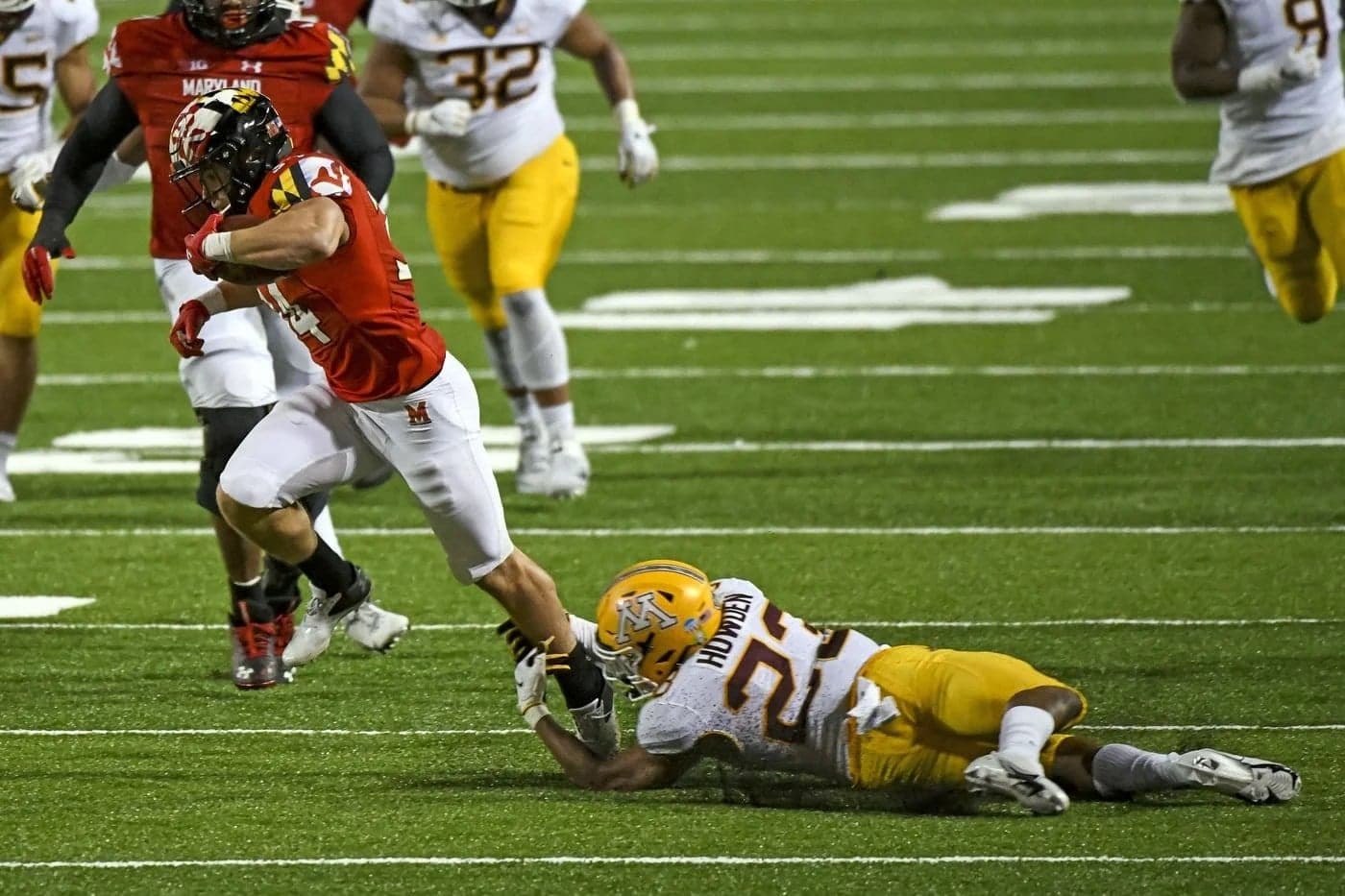 In the second half, quarterback Tanner Morgan hit with redshirt junior wide receiver Chris Autman-Bell on a 39-yarder for a touchdown with 11:54 left in the third quarter to extend Minnesota’s advantage to 35-21, The Terps then drove 84 yards to the 1-yard line. Then freshman running back Peny Boone was hit hard by junior safety Jordan Howden in the backfield and fumbled the ball before crossing the goal line. The ball was recovered by Justus Harris in the end zone, resulting in a touchback.
