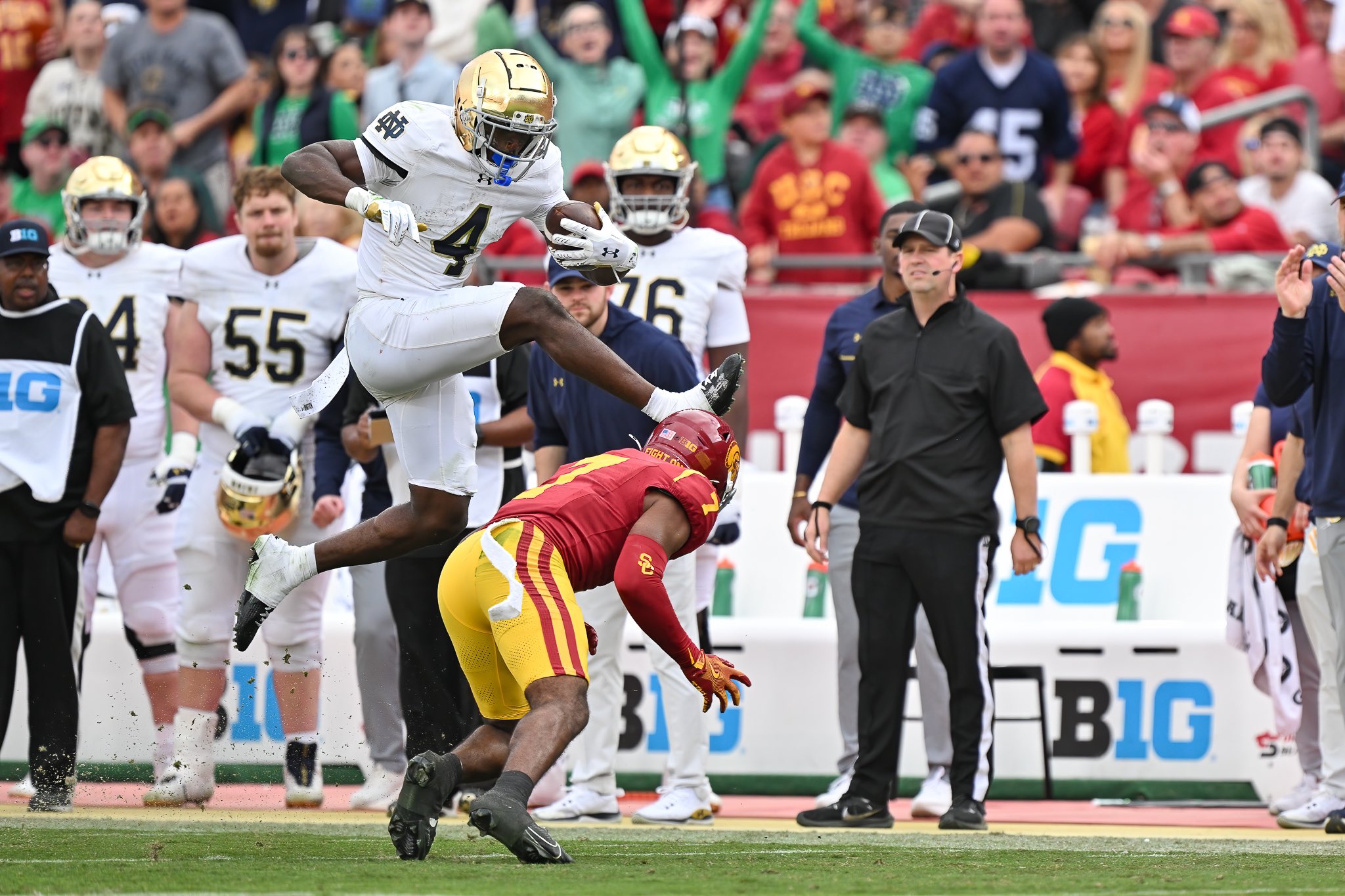 The Fighting Irish (11-1) have rarely been under significant pressure since their lone loss earlier in the season. However, they rose to the occasion in the 95th meeting of their storied rivalry with USC, solidifying their place in the College Football Playoff with a 49-35 victory on Saturday.