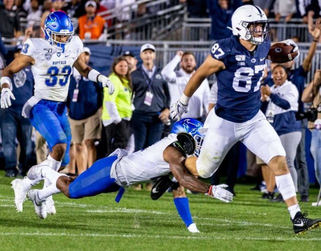 State College, Pa. – Sean Clifford threw for 280 yards, four touchdowns and ran 11 times for 51 to lead the No. 15 Nittany Lions back from a halftime deficit to beat Buffalo 45-13 on Saturday night in front of 104,136 at Beaver Stadium.