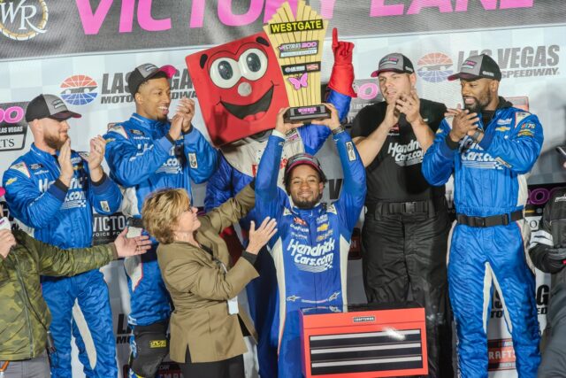Las Vegas, NV – Who said black history was only in the month of February? With just one day removed from black history month, HBCU Senior Rajah Caruth makes history as the third African American driver to win a NASCAR National series race as he joins (1) the late Wendell Scott and (2) Bubba Wallace. He will also be in the history books forever within NASCAR.