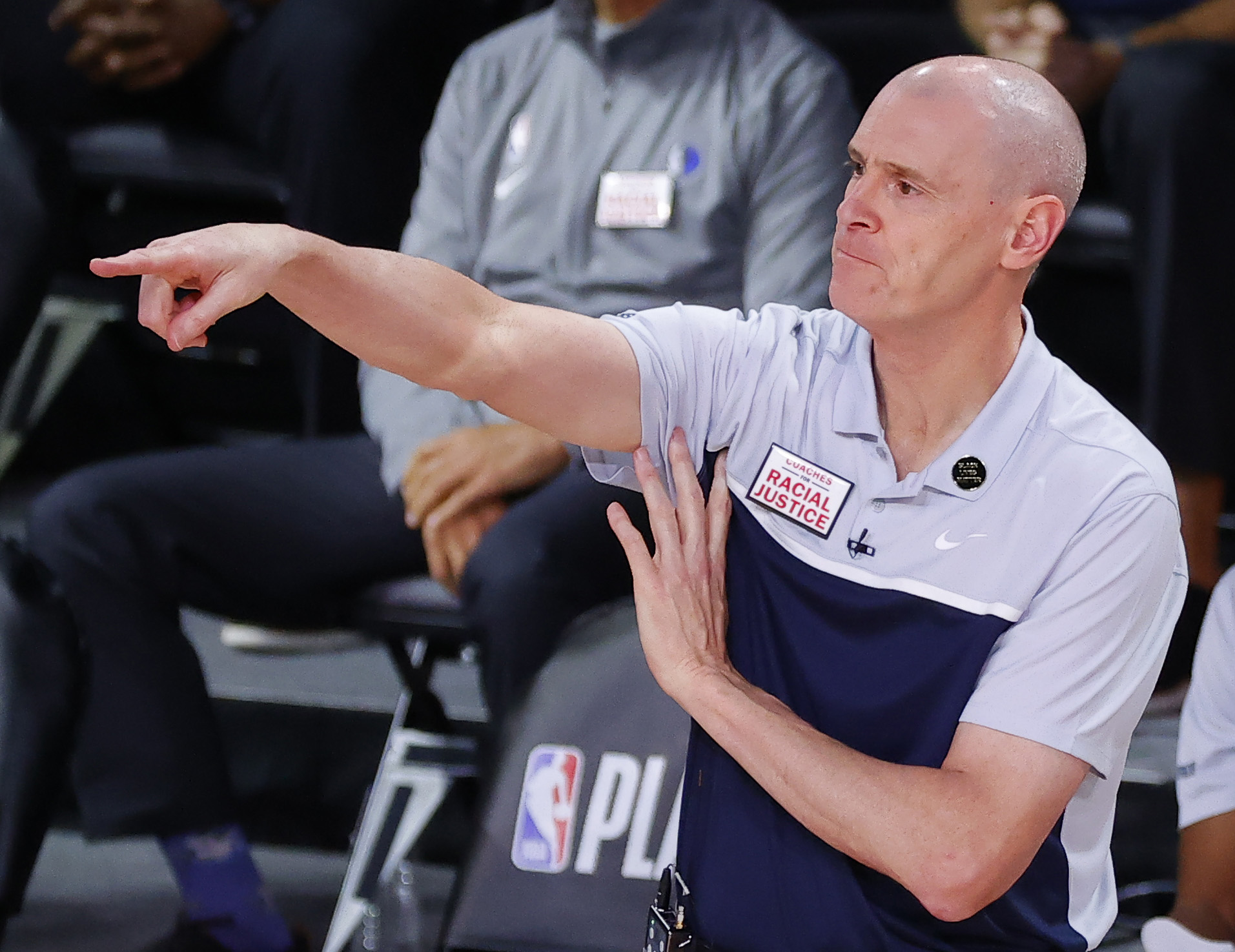 LAKE BUENA VISTA, FLORIDA - AUGUST 30: Rick Carlisle of the Dallas Mavericks signals against the LA Clippers during the first quarter in Game Six of the Western Conference First Round during the 2020 NBA Playoffs at AdventHealth Arena at ESPN Wide World Of Sports Complex on August 30, 2020 in Lake Buena Vista, Florida. NOTE TO USER: User expressly acknowledges and agrees that, by downloading and or using this photograph, User is consenting to the terms and conditions of the Getty Images License Agreement. (Photo by Kevin C. Cox/Getty Images)
