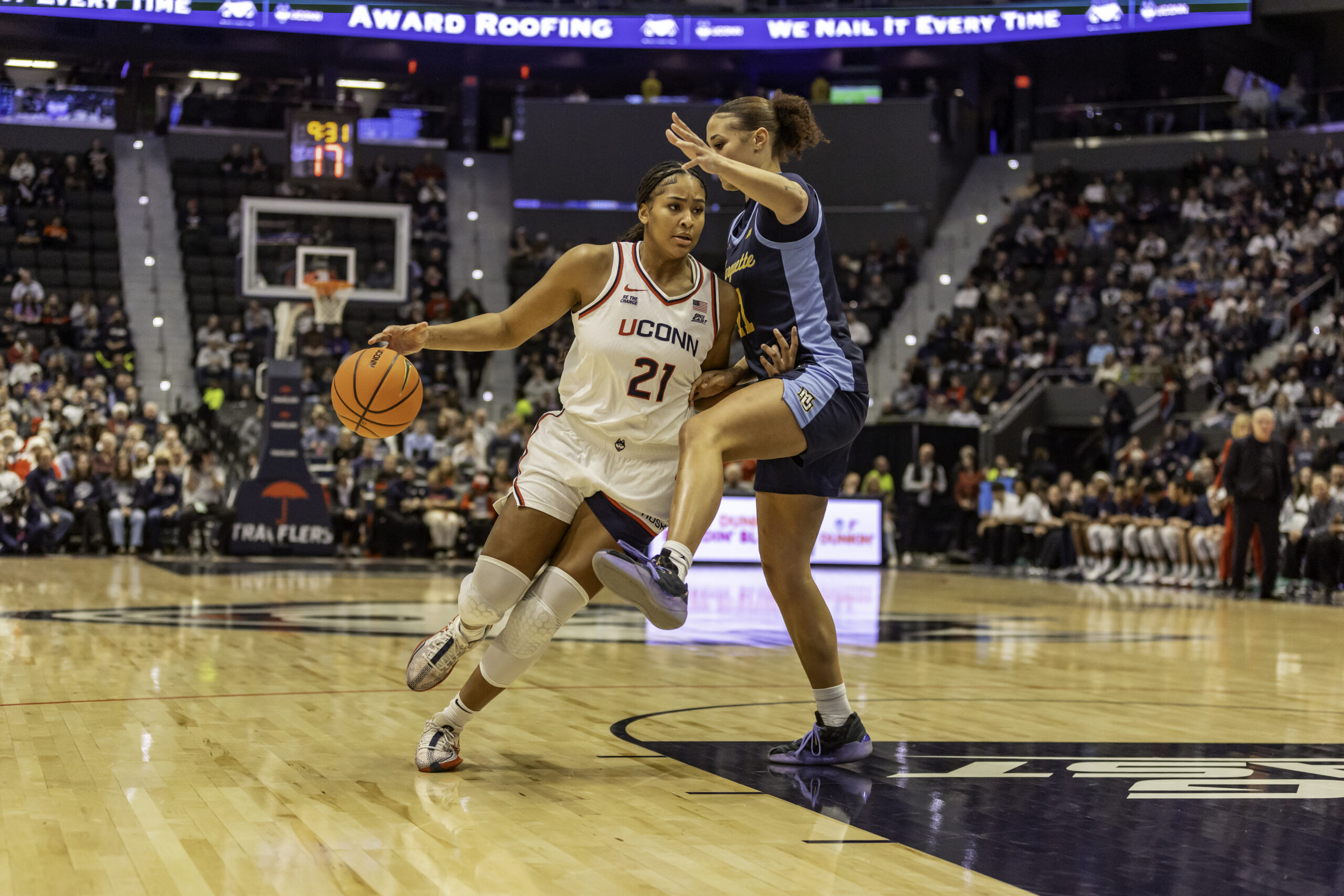 UConn’s offense was crisp throughout, highlighted by a first-half stretch in which the Huskies made eight consecutive field goals. Marquette struggled to keep pace, managing just one instance of back-to-back baskets before halftime.
