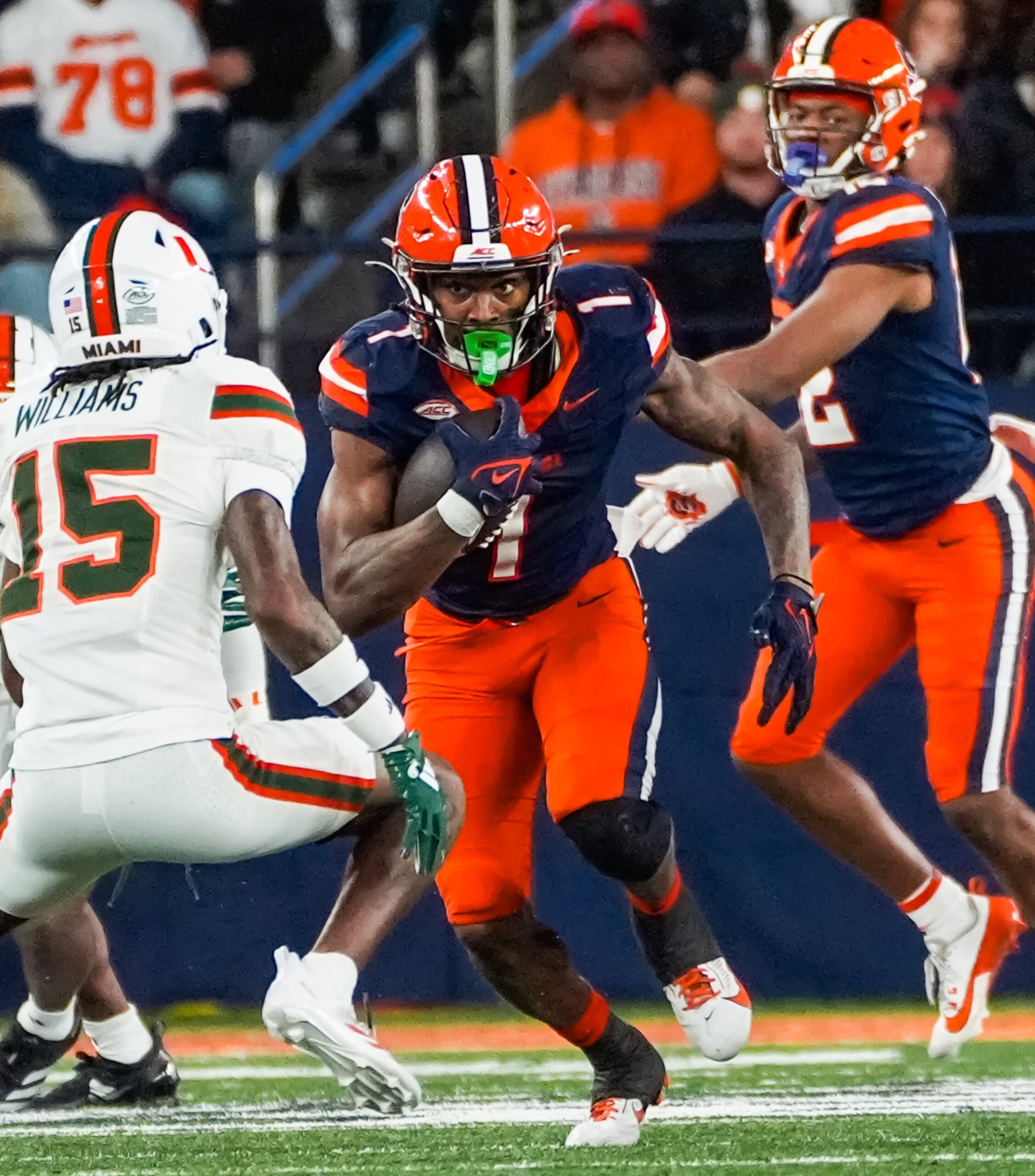 The Orange responded with back-to-back touchdowns in the second quarter, narrowing the gap to 21-14 by halftime. Allen’s 8-yard scoring run and McCord’s 9-yard touchdown pass to Jackson Meeks set the stage for a thrilling second half.