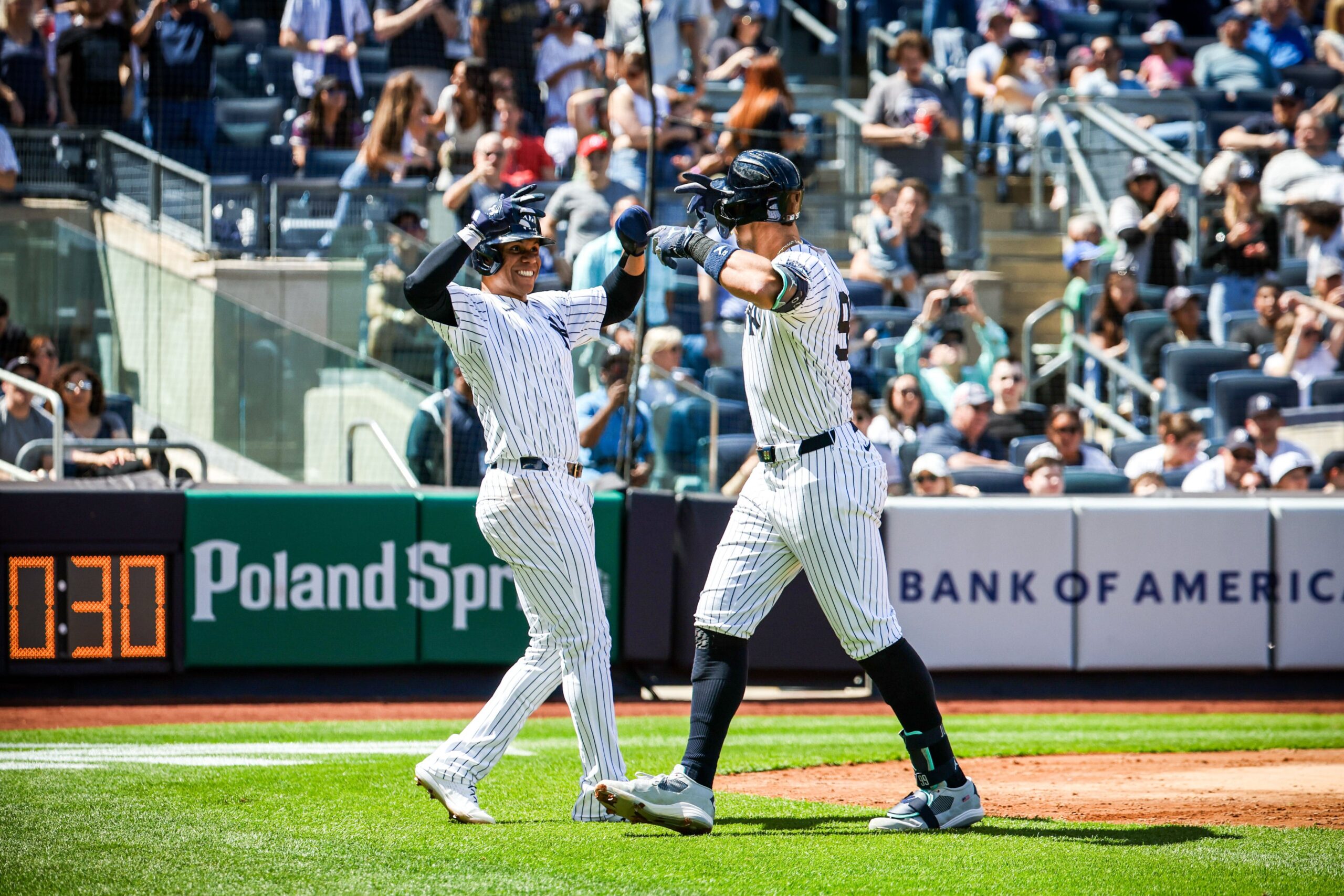 Bottom of the fourth, the Yankees managed to score three runs to give them the lead. While the Yankees occasionally got on base, they struggled to score for the majority of the game. Until the huge bomb from Yankees’ third baseman Jon Berti which led into a big inning for the Bombers.