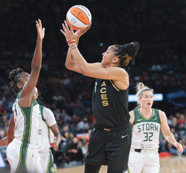 The Aces scored 90-plus points for the ninth time this season and held Seattle to 38% shooting for the night.