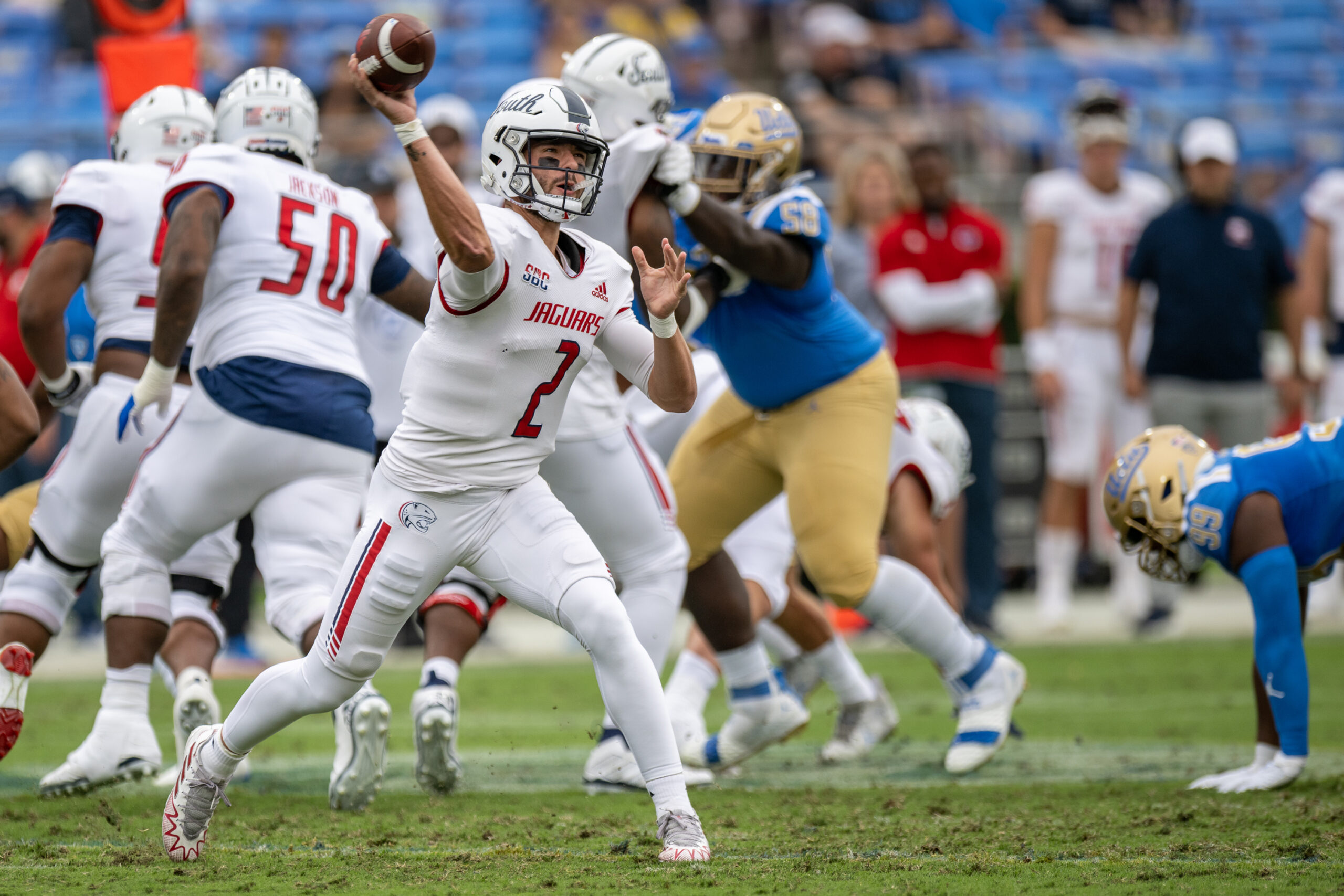 Leading by a two-point lead with just under three minutes left in the game, South Alabama decided to go for it after initially lining up for a 39-yard field goal attempt, the Bruins came up with a huge sack and took over possession. The Bruins took over with 2:52 remaining at the 33-yard line and went 61 yards in 10 plays. Barr-Mira’s field goal sealed the game.